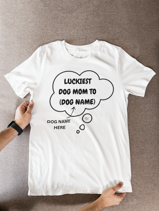 PERSONALIZED LUCKIEST DOG MOM TO... DOG SHIRTS CUSTOM PET T-SHIRTS MOM GIFT TEES FOR PET PARENTS UNIQUE MOM GIFT FOR HER IN THOUGHT BUBBLE GRAPHIC UNISEX T-SHIRT MOM BIRTHDAY GIFT FOR GRANDMA GIFT FROM KIDS