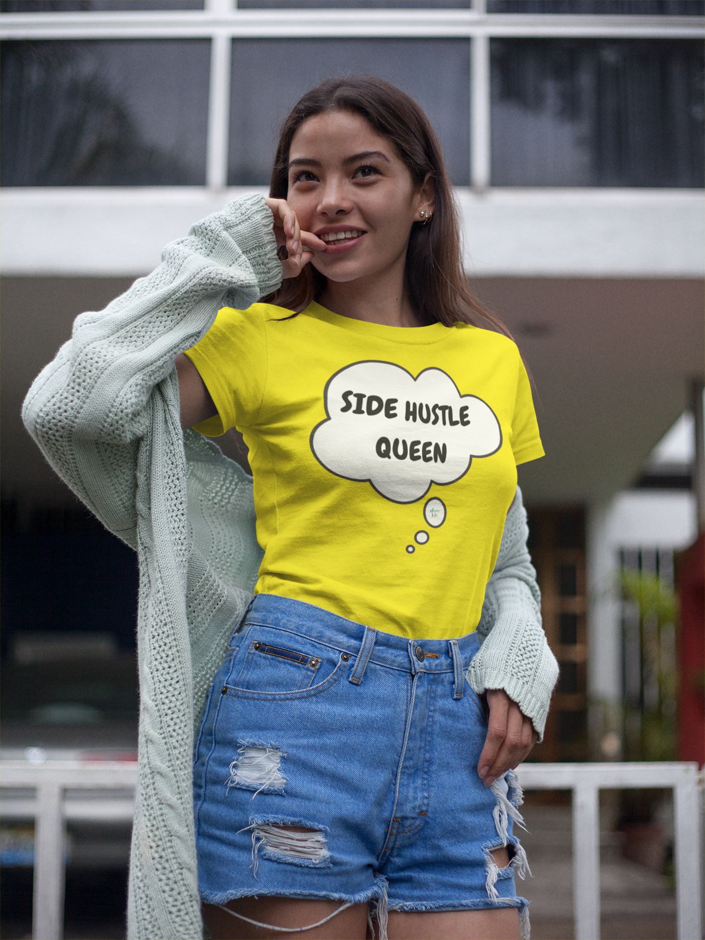 SIDE HUSTLE QUEEN IN THOUGHT BUBBLE GRAPHIC UNISEX T-SHIRT ENTREPRENEUR TEES GIFT FOR WOMAN SHIRTS GIFTS SECOND JOBS TSHIRTS SIDE HUSTLE JOBS FOR FOR MEN